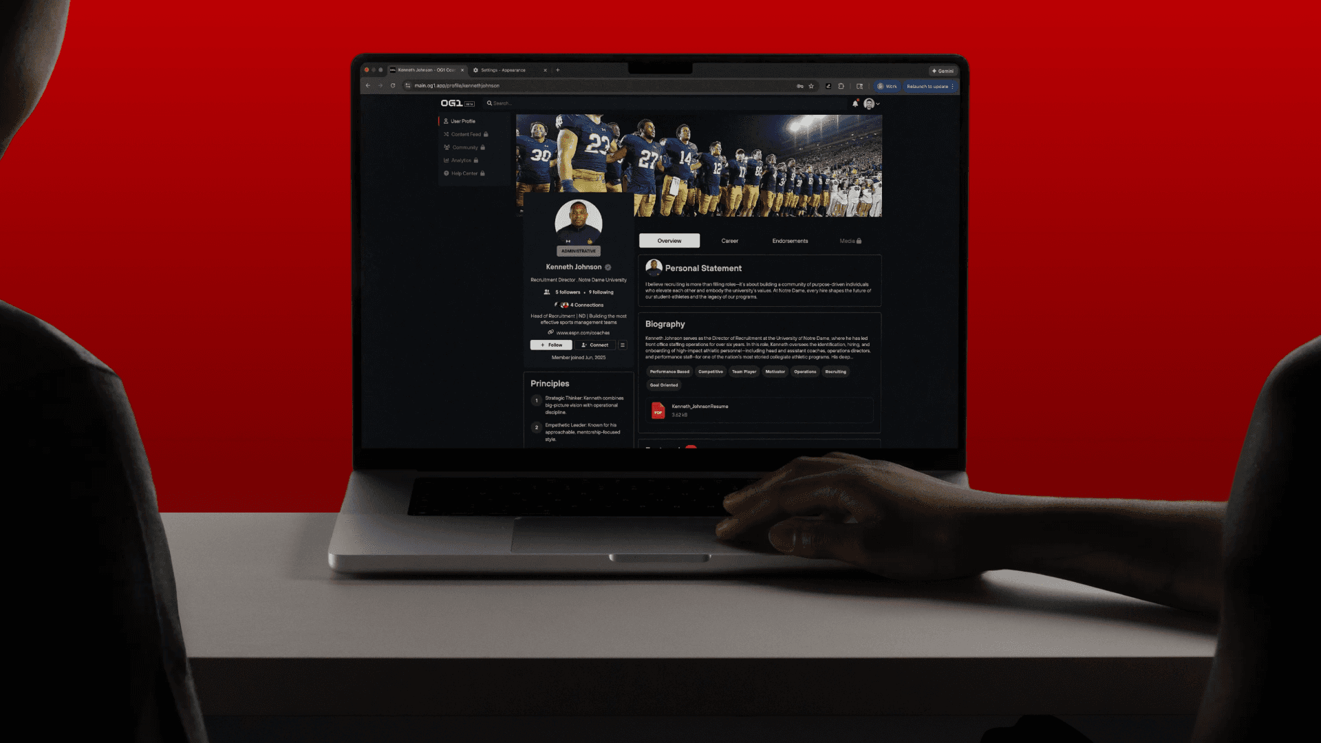 Choose an image that reinforces your identity (program, sport, environment, action shot, stadium, film room, recruiting visit, etc.).